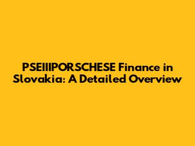 PSEIIIPORSCHESE Finance In Slovakia: A Detailed Overview