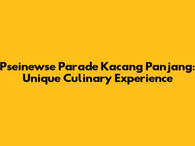 Let's dive into the vibrant and flavorful world of Pseinewse Parade Kacang Panjang! This isn't just your average dish; it's a culinary adventure that combines unique flavors and textures, making it a standout experience for food lovers. Whether you're a seasoned foodie or just starting to explore new tastes, Pseinewse Parade Kacang Panjang offers something special. So, what exactly makes this dish so unique, and why should you give it a try? Let’s explore everything you need to know about this exciting culinary creation.
