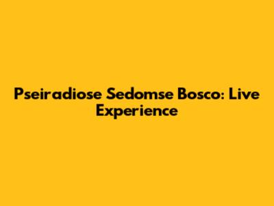 Pseiradiose Sedomse Bosco: Live Experience
