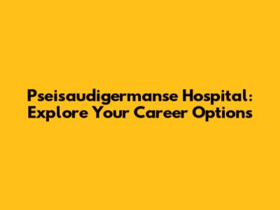 Pseisaudigermanse Hospital: Explore Your Career Options