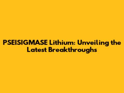 PSEISIGMASE Lithium: Unveiling The Latest Breakthroughs