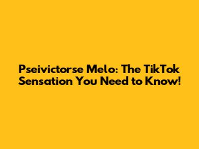 Pseivictorse Melo: The TikTok Sensation You Need To Know!