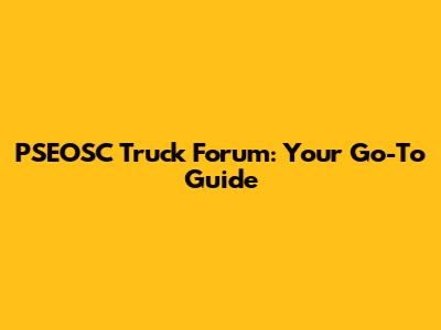 PSEOSC Truck Forum: Your Go-To Guide