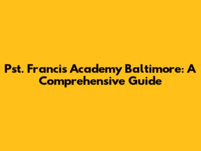 Pst. Francis Academy Baltimore: A Comprehensive Guide