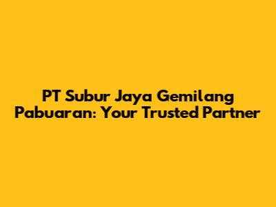 PT Subur Jaya Gemilang Pabuaran: Your Trusted Partner