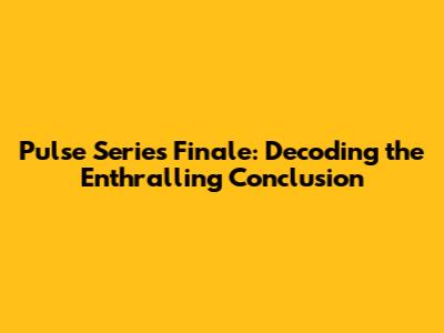 Pulse Series Finale: Unraveling The Ending