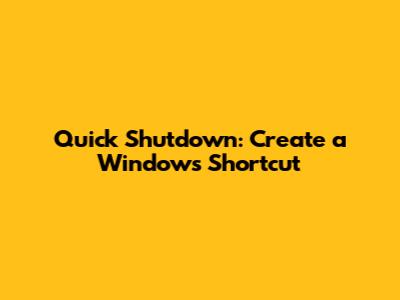 Quick Shutdown: Create A Windows Shortcut