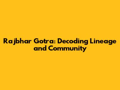 Rajbhar Gotra: Decoding Lineage And Community