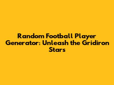 Random Football Player Generator: Unleash The Gridiron Stars