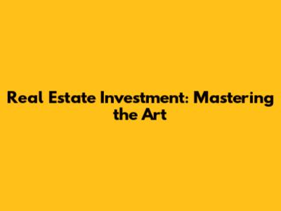 Real Estate Investment: Mastering The Art