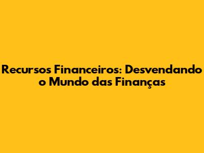 O que são Recursos Financeiros? Entendendo a Essência