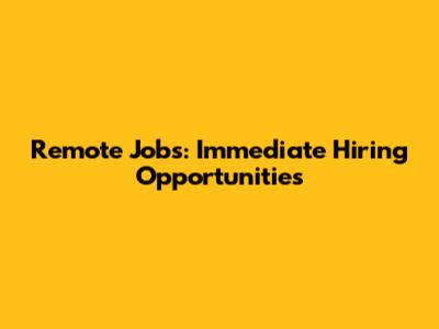 Remote Jobs: Immediate Hiring Opportunities