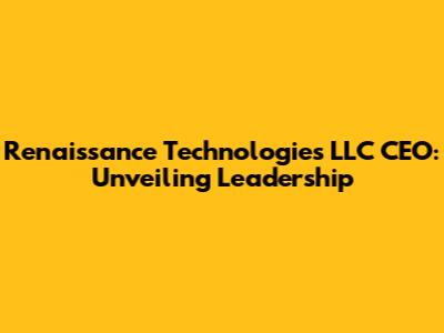 Hey guys! Let's dive deep into the fascinating world of Renaissance Technologies LLC and, most importantly, who's steering the ship as its CEO. This quantitative investment firm, famed for its secretive nature and incredibly successful trading strategies, has always captivated both finance enthusiasts and the general public alike. Understanding the leadership at the helm of such a powerhouse is key to grasping its operations and future direction. So, let's pull back the curtain and explore the current CEO, their background, and what it means for Renaissance Technologies. We'll also take a peek at the company's culture and the qualities that have made it a leader in the finance industry. This is going to be super interesting, I promise!