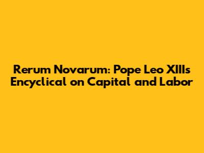Rerum Novarum: Pope Leo XIII's Encyclical On Capital And Labor