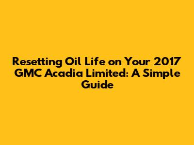 Step-by-Step Guide: Resetting the Oil Life Indicator on Your 2017 GMC Acadia Limited