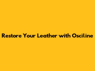 Restore Your Leather With Osciline