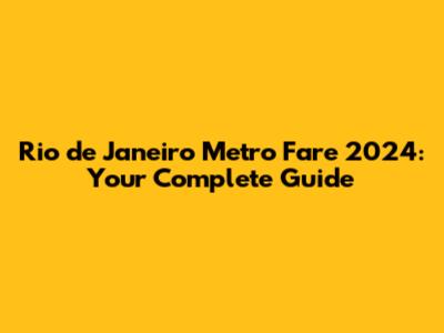 Rio De Janeiro Metro Fare 2024: Your Complete Guide