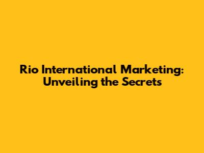 Rio International Marketing: Unveiling The Secrets