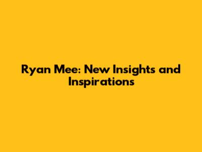 Ryan Mee: New Insights And Inspirations