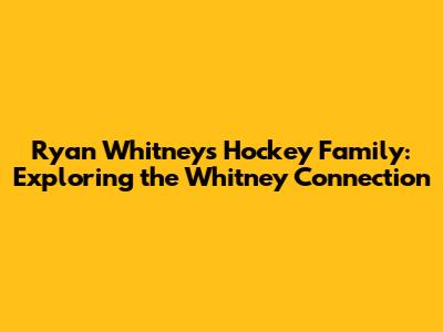 Ryan Whitney's Hockey Family: Exploring The Whitney Connection