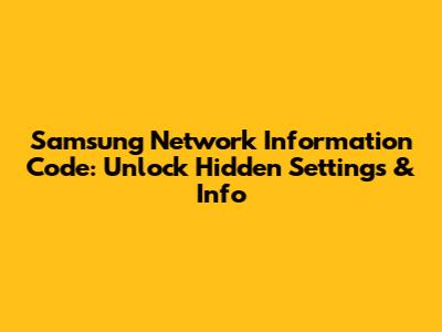 Samsung Network Code: Unlock Hidden Settings & Info