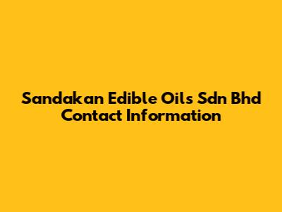 Sandakan Edible Oils Sdn Bhd Contact Info