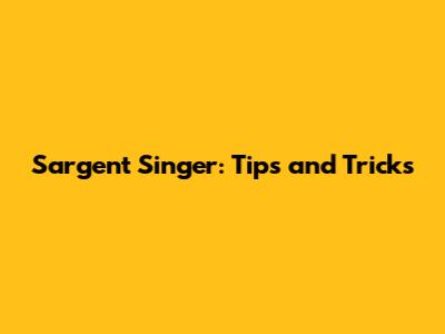 Sargent Singer: Tips And Tricks