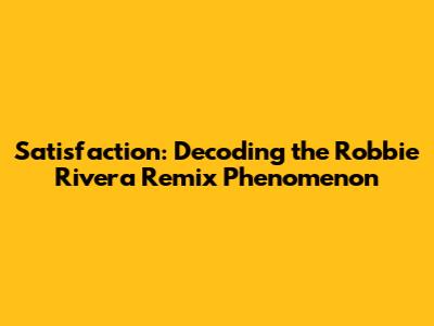 Satisfaction: Decoding The Robbie Rivera Remix Phenomenon