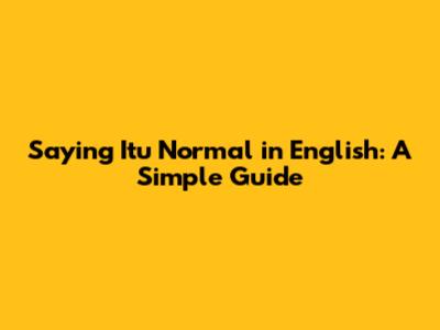 Saying Itu Normal In English: A Simple Guide