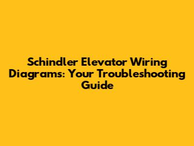 Schindler Elevator Wiring Diagrams: Your Troubleshooting Guide