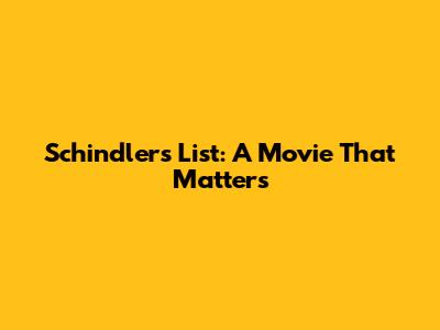 Schindler's List: A Movie That Matters