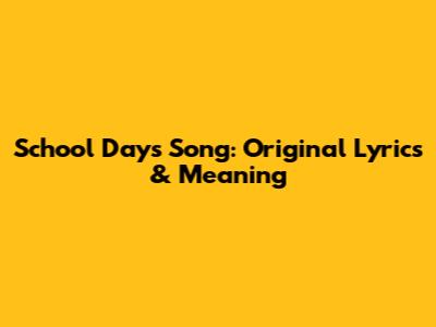 School Days Song: Original Lyrics & Meaning