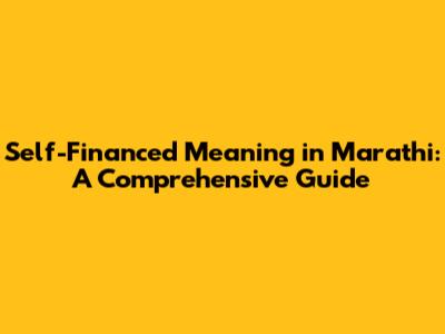 Self-Financed Meaning In Marathi: A Comprehensive Guide