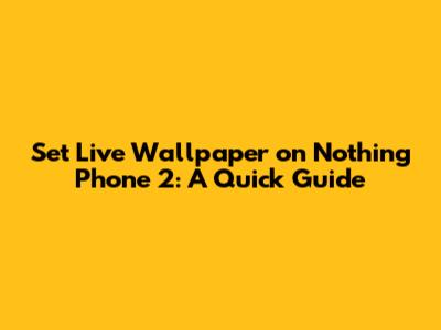 Set Live Wallpaper On Nothing Phone 2: A Quick Guide
