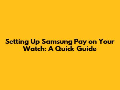 Set Up Samsung Pay On Your Watch: A Quick Guide