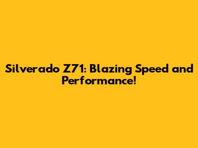 Silverado Z71: 0 To 100 Acceleration Explained!