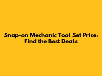 Snap-on Mechanic Tool Set Price: Find The Best Deals