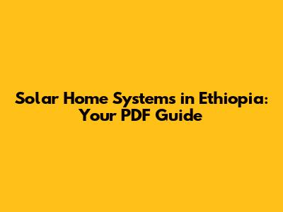Solar Home Systems In Ethiopia: Your PDF Guide