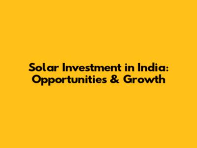 Solar Investment In India: Opportunities & Growth