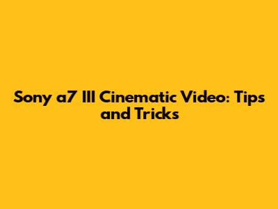 Sony A7 III Cinematic Video: Tips And Tricks