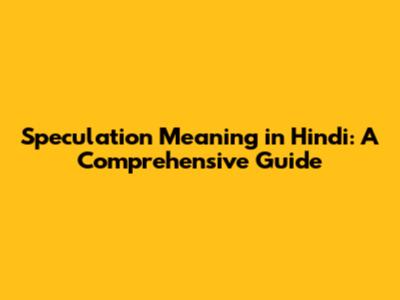 Speculation Meaning In Hindi: A Comprehensive Guide