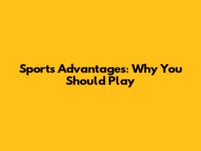 Sports Advantages: Why You Should Play
