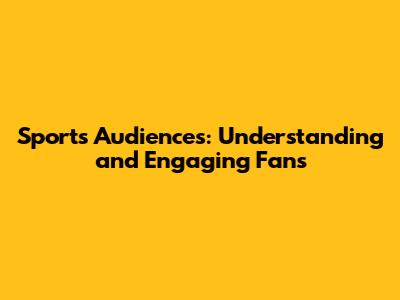 Sports Audiences: Understanding And Engaging Fans