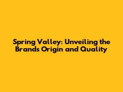 Spring Valley: Unveiling The Brand's Origin And Quality
