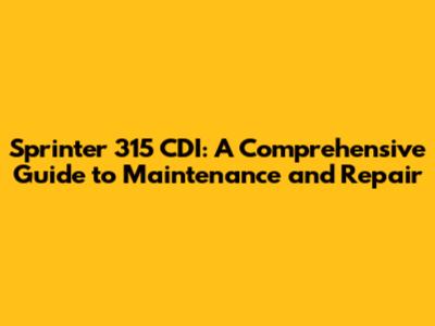 Sprinter 315 CDI: Troubleshooting & Maintenance Guide