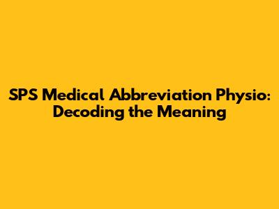 SPS Meaning In Medical & Physio: What Does It Stand For?