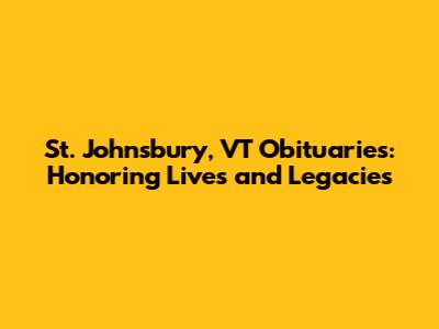 Finding and understanding St. Johnsbury, VT obituaries is a vital part of honoring the lives of those who have passed away. By utilizing the resources available—funeral homes, newspapers, online platforms, and community services—you can access the information you need to pay your respects and support grieving families. Remember, an obituary is more than just an announcement; it's a celebration of a life well-lived and a lasting tribute to those who have shaped our community.