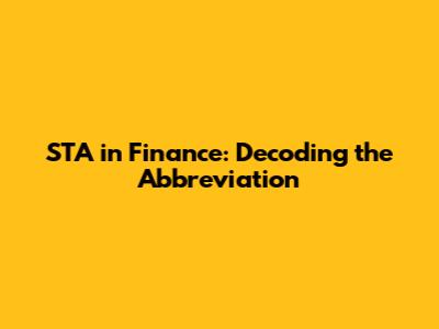 STA In Finance: Decoding The Abbreviation