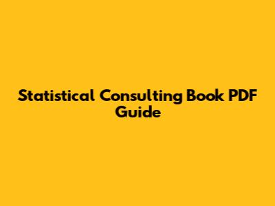 Statistical Consulting Book PDF Guide