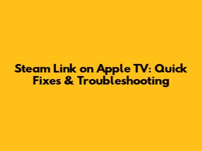 Steam Link On Apple TV: Quick Fixes & Troubleshooting